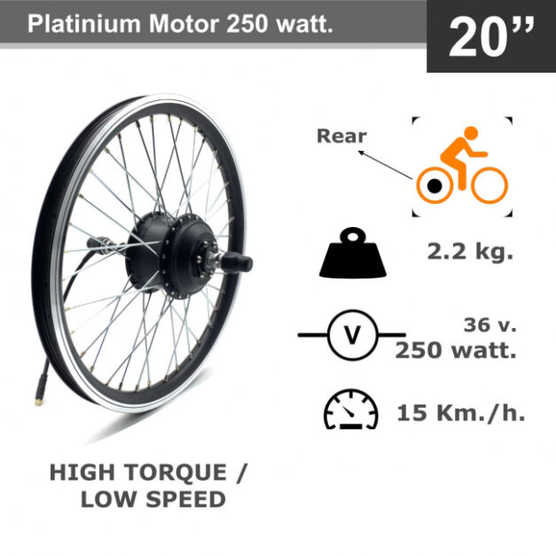 Motore ebike Platinium da 250 watt. Filetto posteriore da 20 “HIGH TORQUE